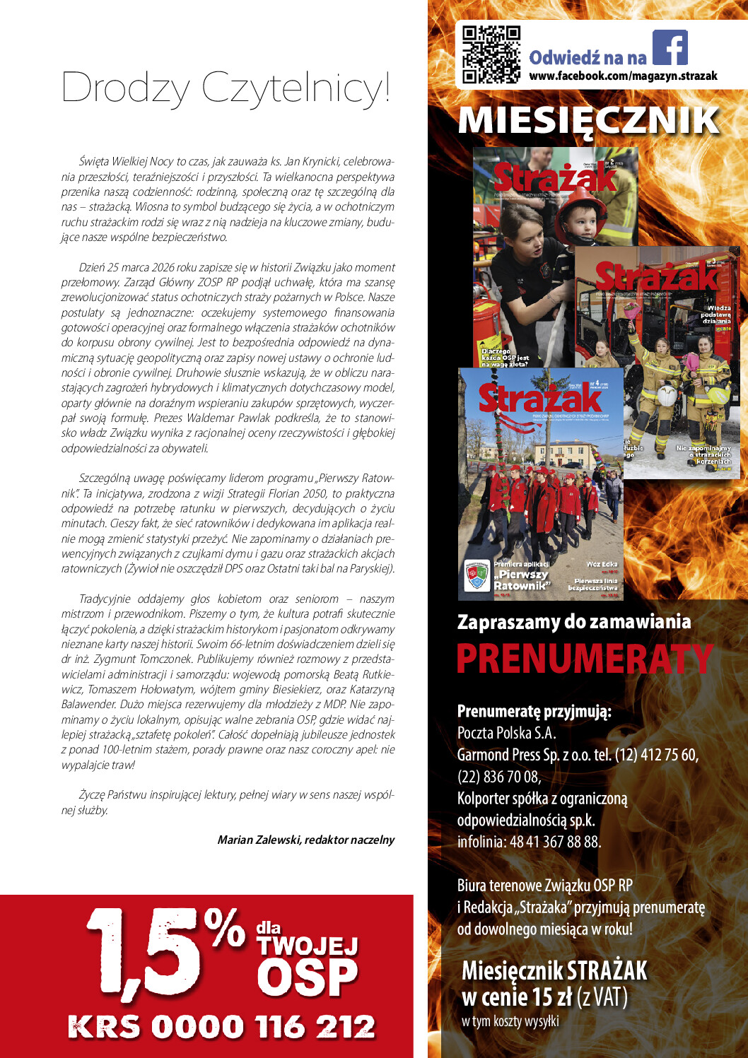 W kwietniowym numerze „Strażaka” prezentujemy ruch strażacki oraz nową inicjatywę Związku OSP RP, która dotyczy strażaków ochotników, ich jednostek oraz bezpieczeństwa nas wszystkich. Zachęcamy do prenumeraty i lektury!